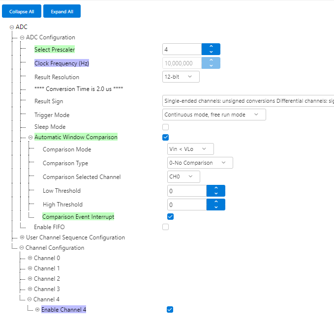 are manually Configured. For Comparison, only the Event Interrupt has to