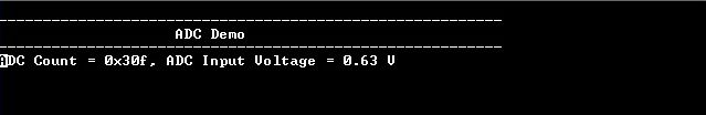 In this example, Analog input voltage in the range of 0V to 3.3V is fed to the ADC and converted value is displayed on the console. The ADC conversion is triggered by software and result is polled using status API.