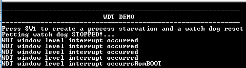 - WDT will reset the device in four seconds and the demonstration should restart
