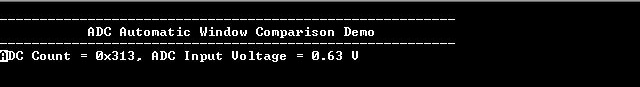 This example application shows how to use the ADC Peripheral library to perform automatic window comparison of converted values.