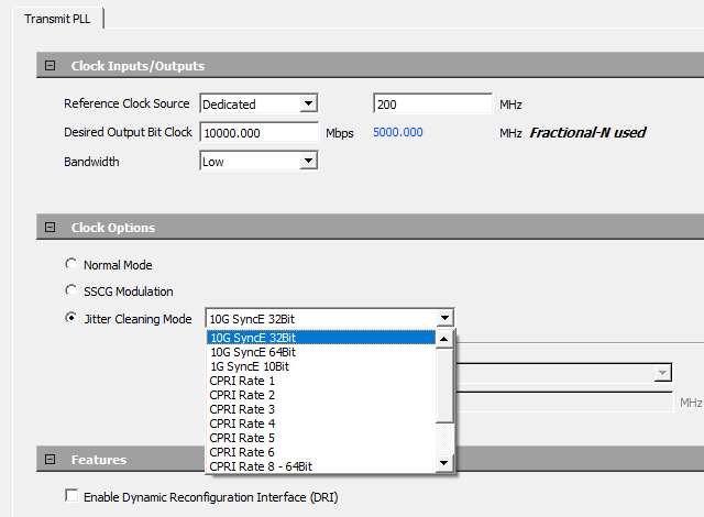 Select Jitter Cleaning Mode under the Clock Options and choose the targeted protocol templates from the drop-down as shown in the following figure.