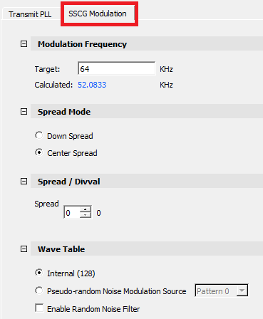 - Select SSCG mode to enable the SSCG Modulation Feature tab.
