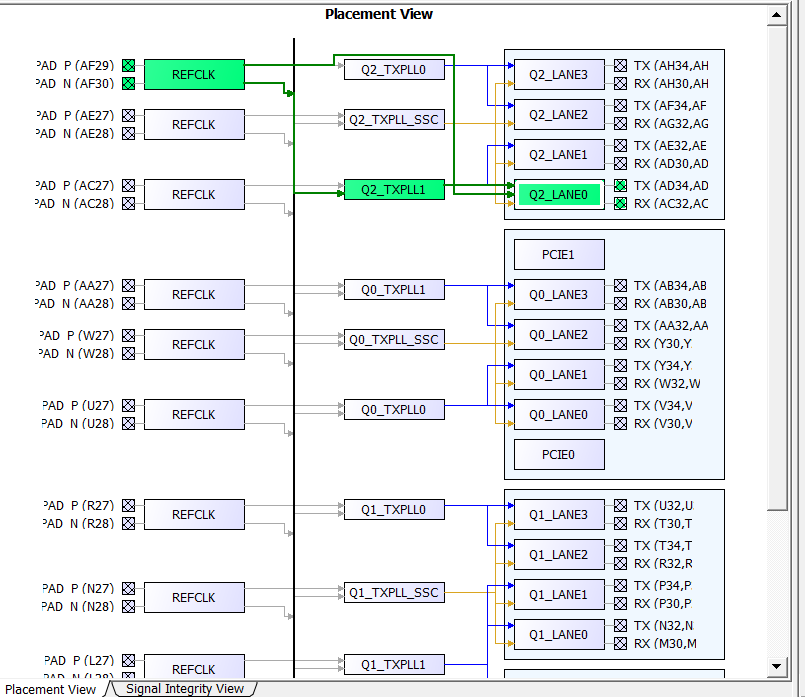 - A graphical physical view of the REFCLK, its connection from the PADS to the TXPLL and the XCVR lanes.