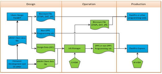 The main SPPS flow is based on the use of HSM in the Operation and Production site. It supports the advanced production the programming models and SmartDebug as described in the following sections.