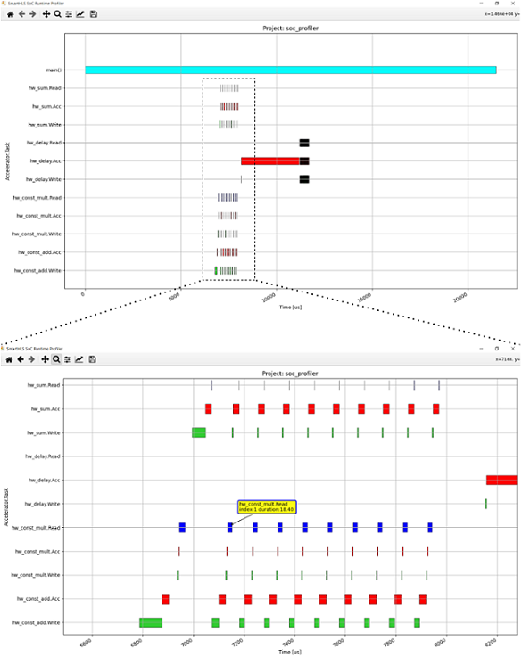 | soc_profiler_view | Displays a runtime plot and prints a summary table of the profiling data gathered during runtime execution for each accelerator in the project. |