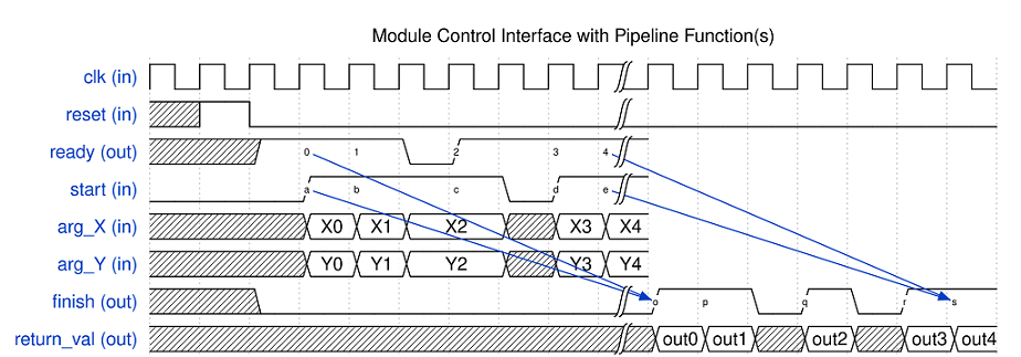 - When function pipelining is used, the top-level function cannot have array interfaces (array arguments or global arrays that are accessed from both SW test bench and HW functions).