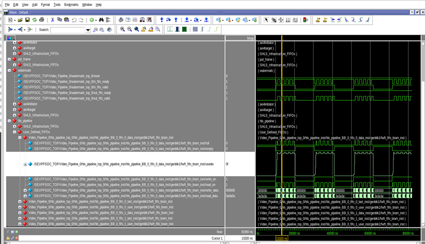 - The input and output ports, as well as the occupancy levels, of all FIFOs within the SmartHLS design.