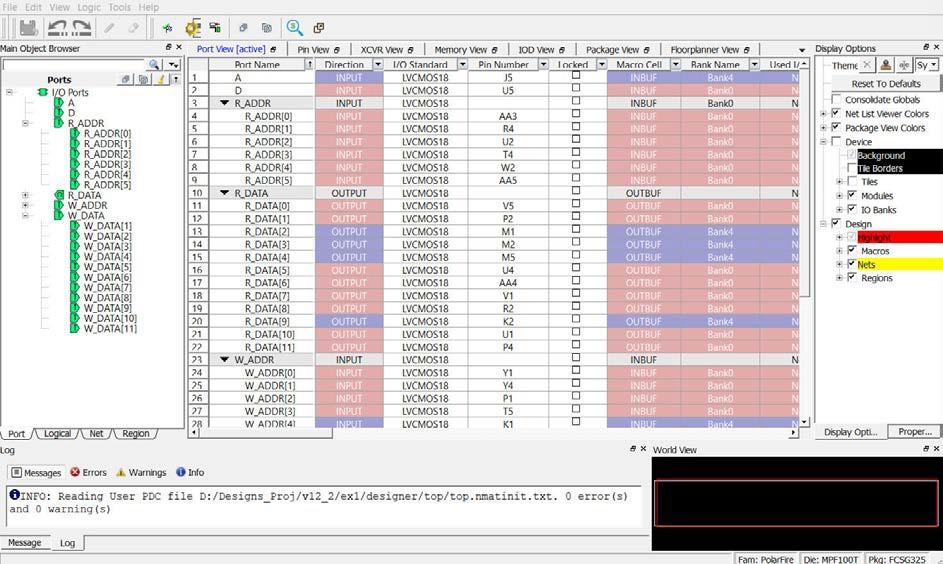 The Edit with I/O Editor option in the Constraint Manager allows you to save or commit your changes to PDC files, whereas the View option shows the post-Place and Route design including the final placement and the I/O attributes in read-only mode. You cannot save or commit any changes made in the I/O Editor opened using the View option.
