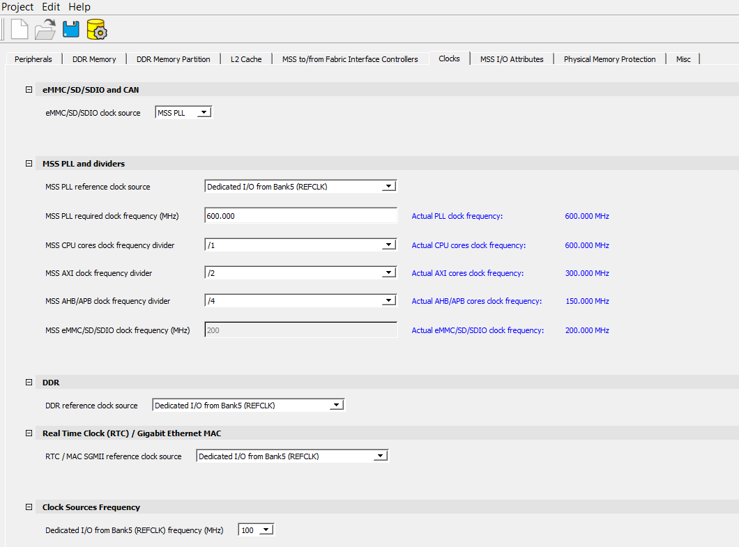 | Dedicated I/O from Bank5 (REFCLK) frequency | This is a dedicated I/O from Bank 5 to the MSS PLL. It can either be 100 MHz or 125 MHz. |