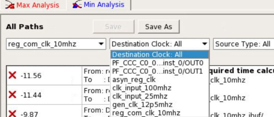 Example: The path table shown in the following figure, the worst path for reg_com_clk_10mhz to