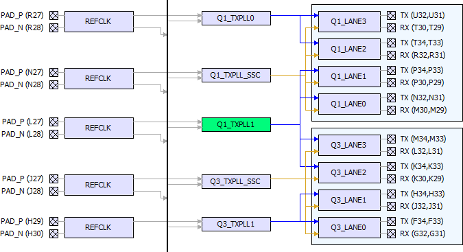 Figure 9-26. Q1_TXPLL1 to Four Lanes Connection (Before Placement)