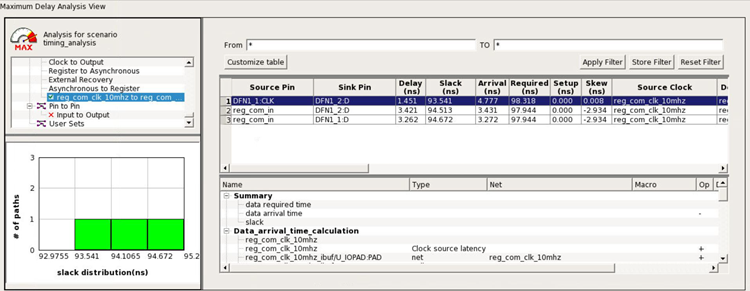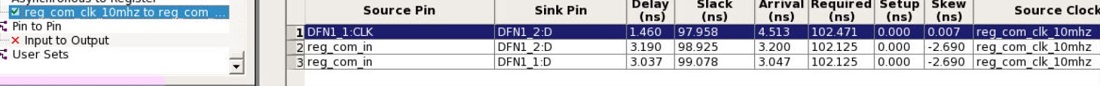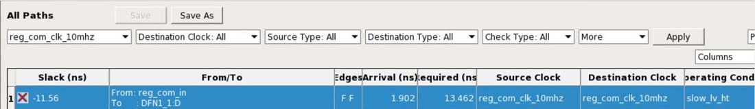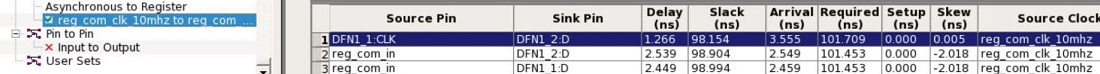 Example: The path table shown in the following figure, the worst path for reg_com_clk_10mhz to