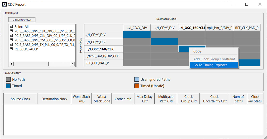 Figure 13-37. CDC Report with Go to Timing Explorer