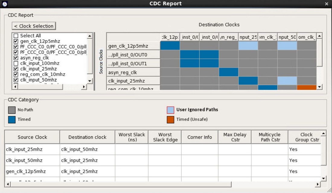 CDC Report. Selecting/unselecting clocks in clock selection does dynamically change the