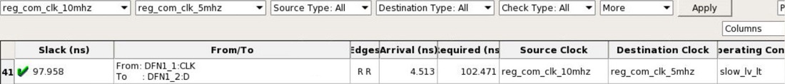 The Timing Report Explorer does not pick reg_com_clk_5mhz as destination clock, and Smart time