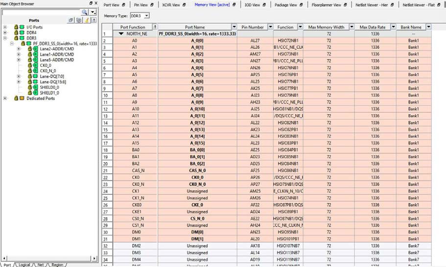 - Port Function—Formal port name of the Memory Interface. The ports specific to the memory interface type are loaded into the Port View.