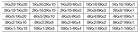 | 4Kx4, 4Kx5 | 010 |