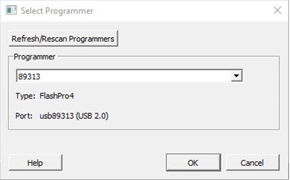 To display the Select Programmer dialog box, in the Libero SoC Design Flow window, expand Configure Hardware and double-click Select Programmer.