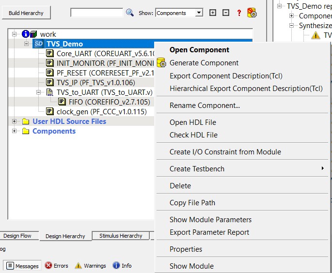 - Other SmartDesign components (*.cxf files). These files can be generated from SmartDesign in the current Libero SoC project, or they can be imported from other Libero SoC projects.