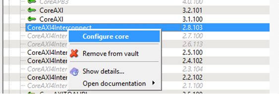- Double-click a core to configure it and add it to your design. Configured cores are added to your list of Components/Modules in the Design Explorer.
