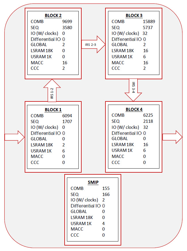 - Create SmartDesign block where you instantiate all the individual blocks and connect their IRS signals. This top-level module should contain instantiations of all Blocks along with interconnects between them to replicate a complete system.
