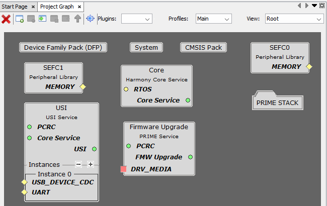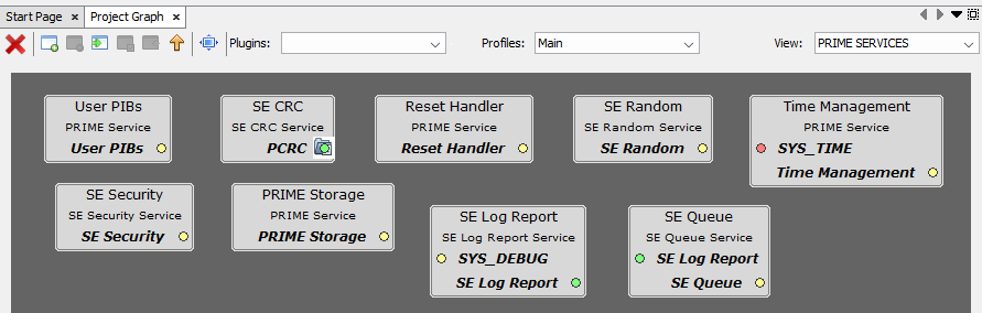 The following figure shows the MCC project graph of PRIME Service Bin application for
