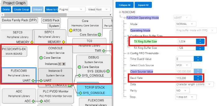 - The Console and Debug system services are used to show debug information through the serial interface.