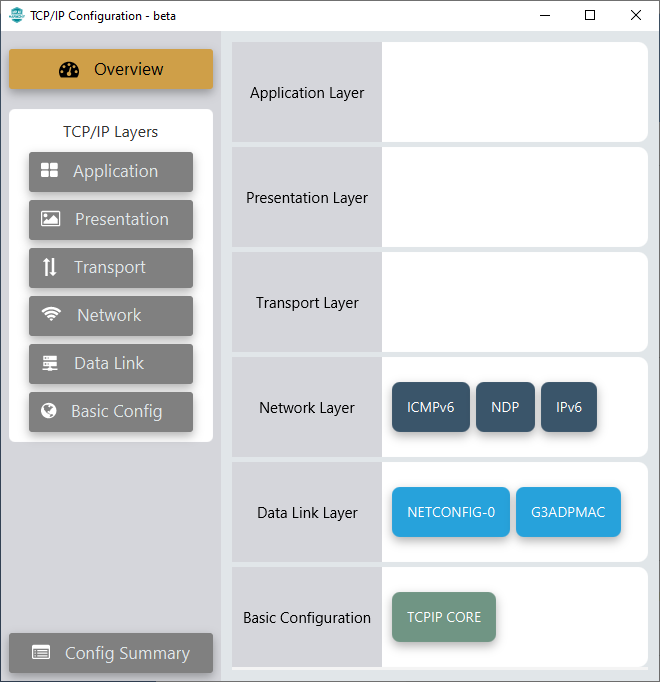 - In this application there is only one TCP/IP interface (NETCONFIG-0), which is connected to G3ADPMAC. G3ADPMAC is the interface between the TCP/IP stack and the G3 stack API (ADP).