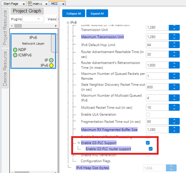 - Enable G3-PLC router support: In this project it is enabled due to it is a Coordinator. It is automatically enabled by G3ADPMAC component if G3 Mode of Operation is PAN Coordinator.