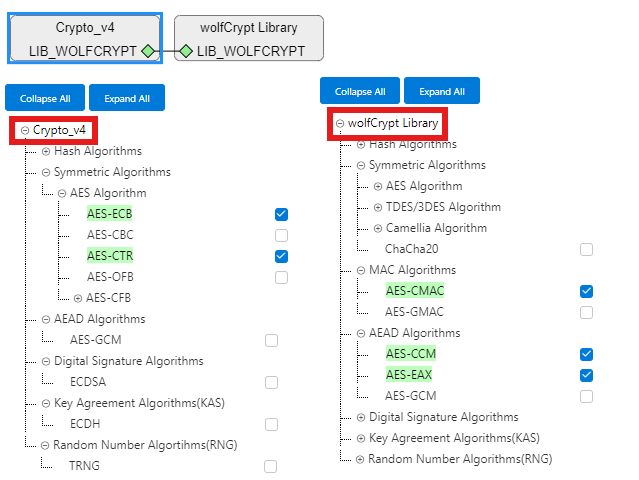 The Cryptographic Library has to be configured to support all the algorithms required by G3. The figure below shows the configuration for this example.