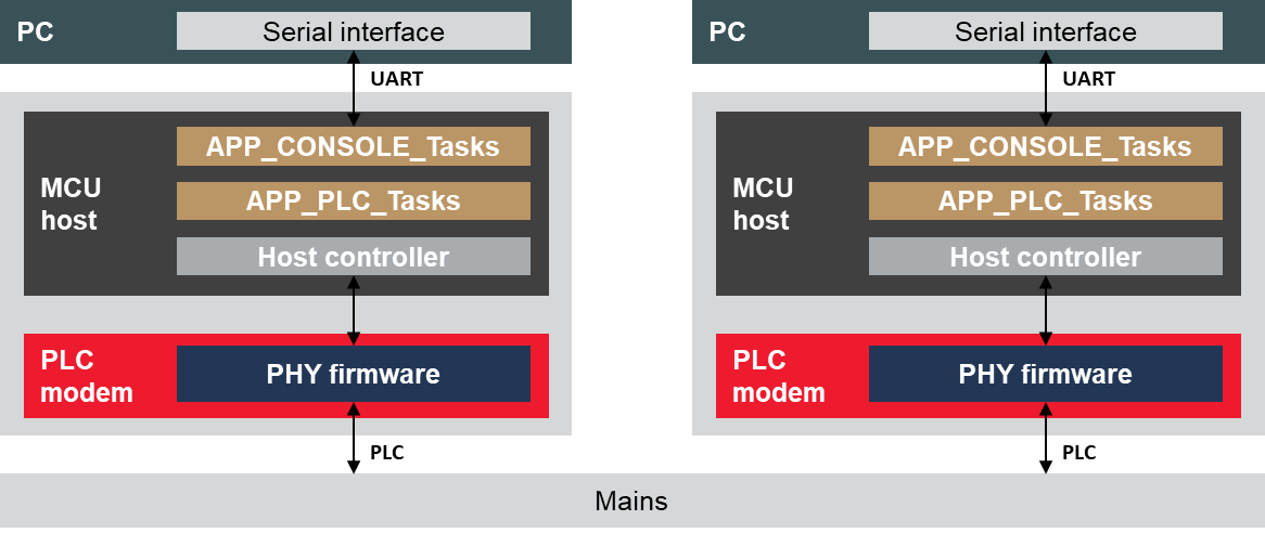 This application example assumes that a host device (for example, a PC) is connected through a serial interface (UART, USB) to a Microchip evaluation kit acting as a PLC modem.