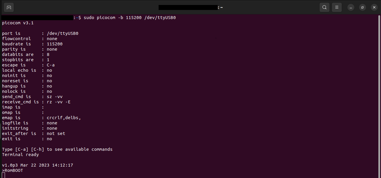 ls /dev/tty*to locate the device (for example,/dev/ttyUSB0).Figure 2-6. Linux Terminal Console