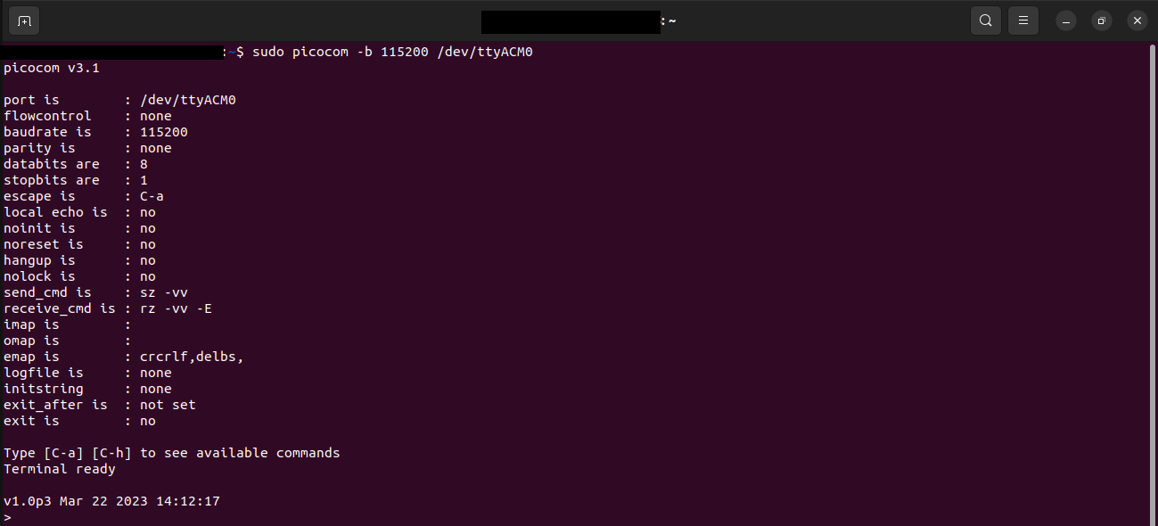 ls /dev/tty*to locate the device, for example/dev/ttyACM0:Figure 2-2. Linux Terminal Console