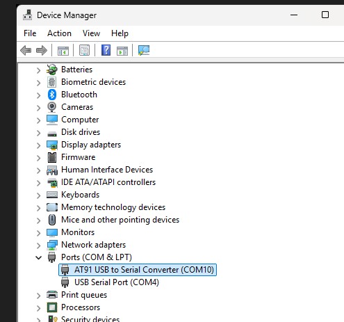 - Make sure the USB COM port is not open in any terminal emulator/console.