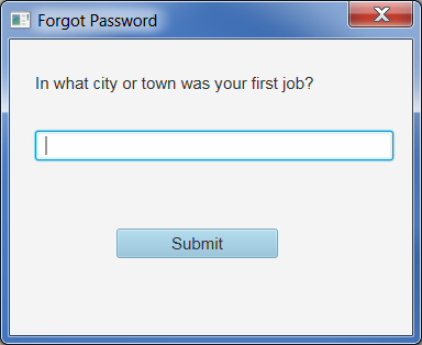Log in button. The Forgot Password dialog opens where you can answer the security