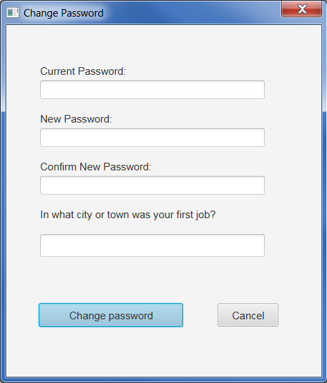 To change the password after the initial log on, click Change Password. A Change Password dialog opens.