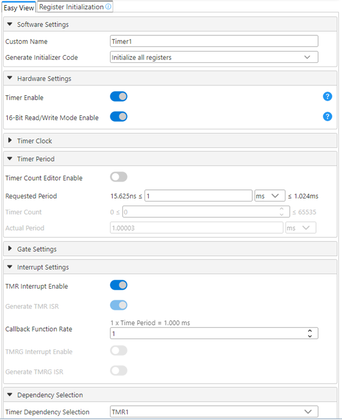 Set the Requested Period to 1 ms and enable TMR Interrupt