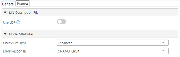 In the main UI, add the following LIN frames and set the Checksum Type to “Enhanced”