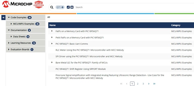 MPLAB Discover bundles the available resources from multiple sources into one portal, such as code examples, data sheets, evaluation boards, videos and blogs.