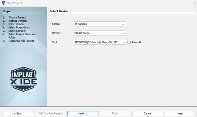 are using (e.g., PIC18F56Q71) and click Next, as shown in Figure 3-4.