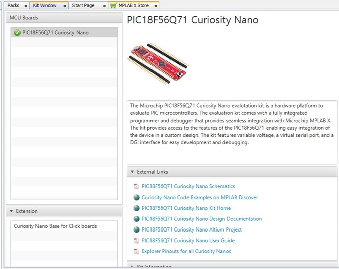 Figure 3-1. Curiosity Nano Kit Window in MPLAB® X