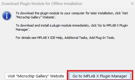 Figure 2-6. Plugins Download - Go to MPLAB X Plugin Manager to see