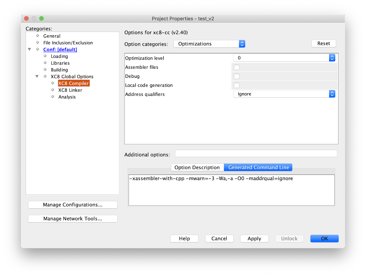4.7.1.2.2 XC8 Compiler - Optimizations options
