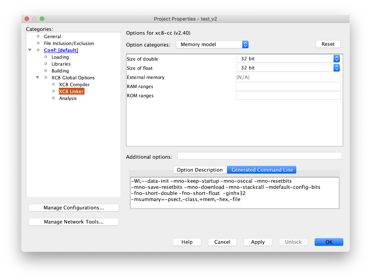 4.7.1.3.2 XC8 Linker - Memory model options