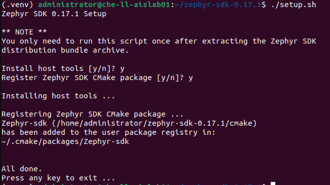 $ tar xvf zephyr-sdk-0.17.2_linux-x86_64.tar.xz