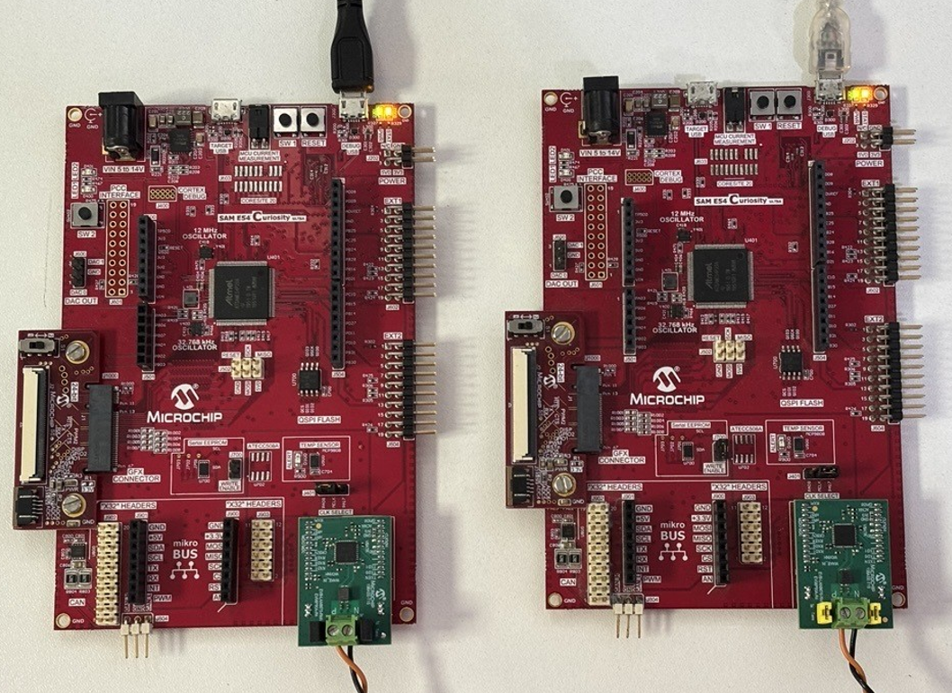 - Node 2 (Client): SAM E54 Curiosity Ultra Development Board with EVB-LAN8670-RMII connected