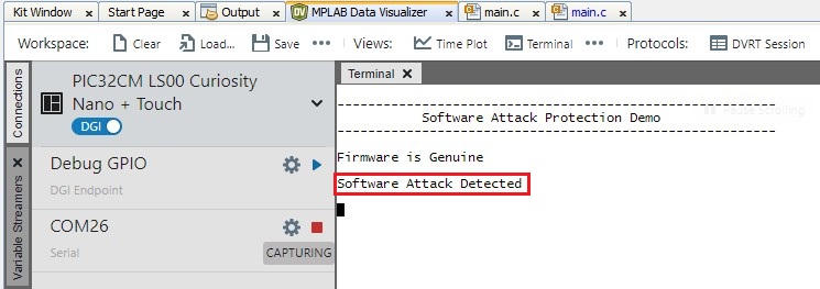 Figure 6-9. Simulation of Software Attack - Observe the console message of