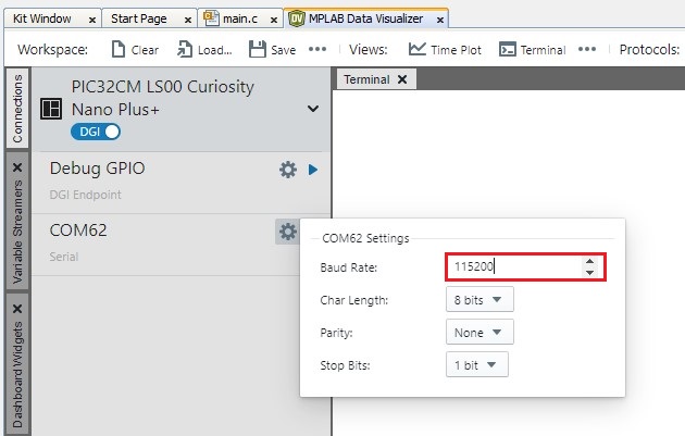 completing the programming, open the MPLAB Data Visualizer by clicking the