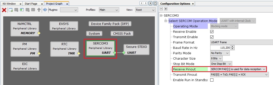 Figure 3-14. MPLAB Code Configurator – SERCOM and Secure STDIO Selection
