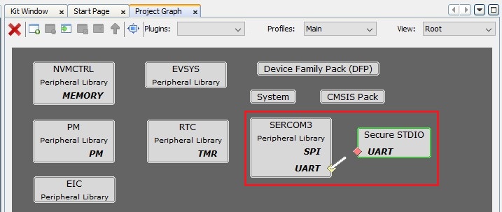block by dragging the UART Yellow Diamond to the Red Diamond in the Secure STDIO